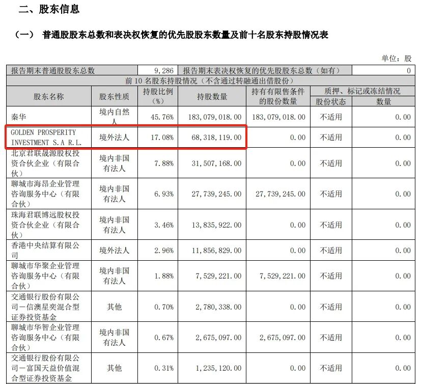 然而,在其业绩迅猛增长之际,外资股东却进行大额套现操作。据6月13日公告,公司股东Golden Prosperity Investment S.A.R.L.通过询价转让方式减持1200万股,转让价格为90元/股,交易总金额达到10.8亿元。